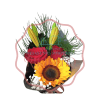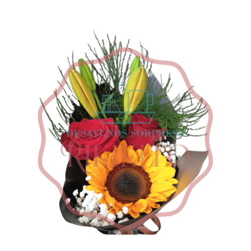 El girasol simboliza alegría, luz y admiración; las rosas rojas representan amor profundo, y los liliums aportan distinción y sofisticación. Es el regalo ideal para cumpleaños, celebraciones especiales o para sorprender con un detalle diferente y lleno de vida.